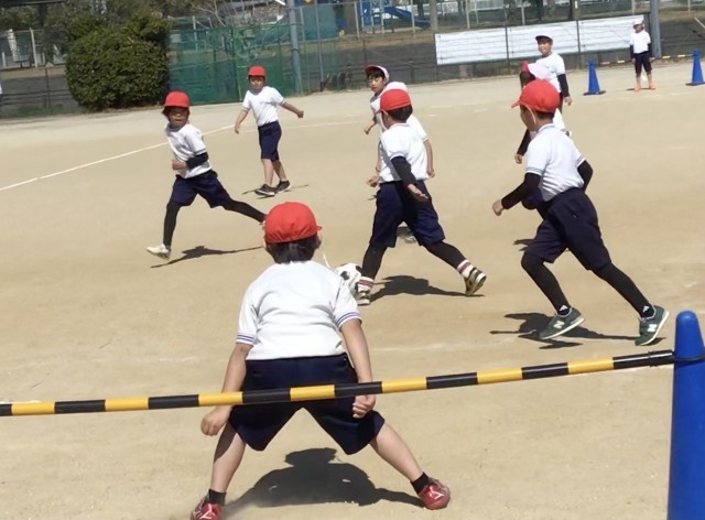 2年生合同体育でサッカーをやっていました。11時ぐらいになるとポカポカ陽気で、...
