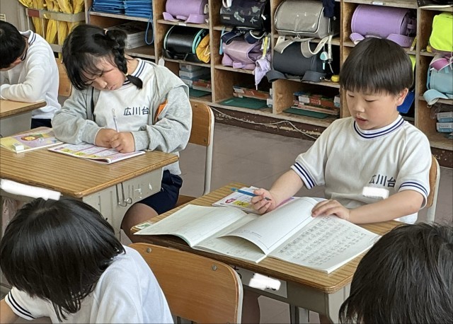 2年2組さん、新しい漢字を勉強中です。「光」「話」「丸」「声」の4文字を勉強し...