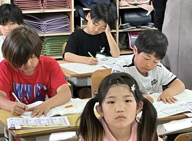 5年2組さん、少人数学級の算数です。配られた立方体をもとに、かさがいくつあるの...