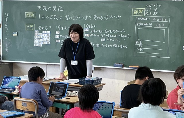 5年1組さん、理科の授業です。「1日の天気は、雲のようすによって変わるのだろう...