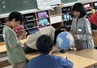 5年2組さん、社会の授業です。地球儀を見ながら、先生が出してくれた問題の答えを...