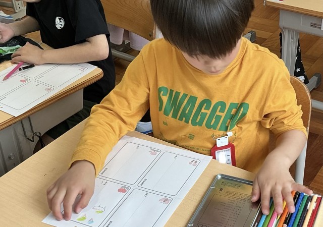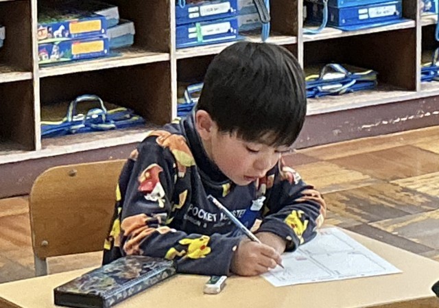 1年生、5時間目はオリジナルの名刺をつくっていました。まずは自分の名前を書きま...