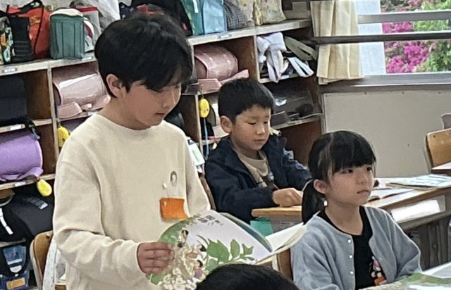 1年2組さん、国語の授業で音読練習です。「「だいすき」を気持ちを込めて、読んで...