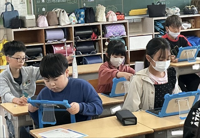 5年2組さん、算数の授業でタブレットに「ドリルプラネット」をインストールしまし...