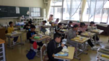 <写真・下> 5・6年生の給食の様子