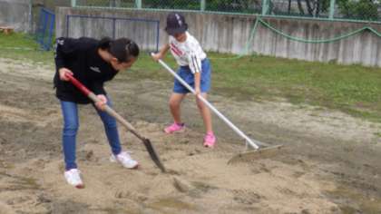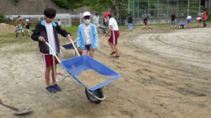 ○こうした子どもたちの活躍により、ずいぶん運動場が整ってきました。