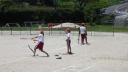 ○最近、5・6年生も、体育で「ティーボール」をしています。