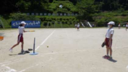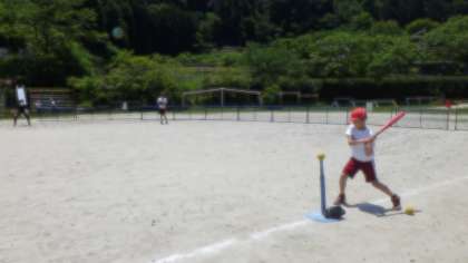 ○ティーの上に置いたボールをバットで打つことが上手になり、