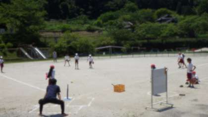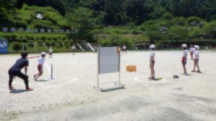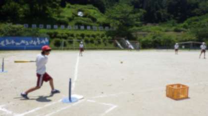 ○高学年の子どもたちも、この「ティーボール」は楽しいようです。