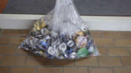 (5月から今回まで回収した缶の総重量は、7.9kgです。)