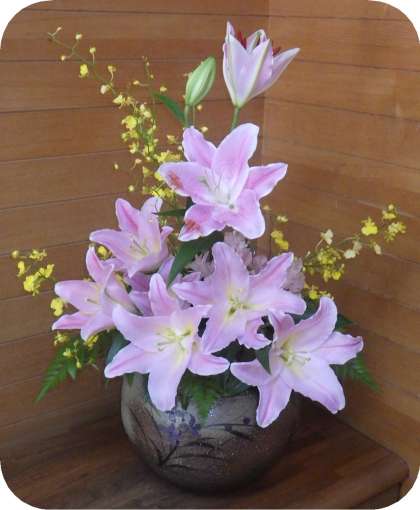 7月19日「花ボランティアさんの生け花」 公開日 2021/07/19 更新日 2021/07/19 学校の特色ある活動 【花ボランティア・Tさんの生け花作品】 〇淡いピンク色のユリが映える、とても素敵な生け花作品です。 〜心のオアシスをつくってくださり、ありがとうございます!!〜