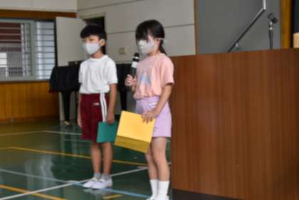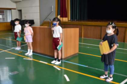 ○2年生・4名は、がんばったことなどについて作文を書いて練習した上で、