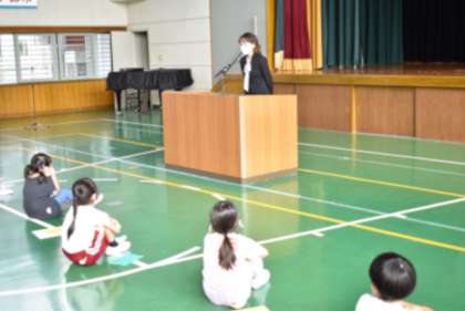子どもたちの「前期の成長」を褒めたたえるとともに、