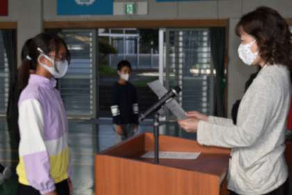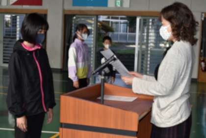 10月15日「任命式」その3 公開日 2021/10/19 更新日 2021/10/19 学校行事 【後期委員長の任命式】 〇「委員長」になった子どもたちの『任命式』を行いました。 (写真・上:ふれあい委員長、写真・中:ほんわか委員長、 写真・下:すこやか委員長)