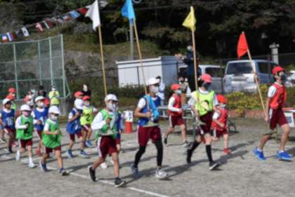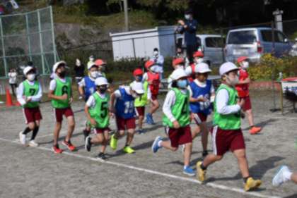 〇力いっぱい走り切った本城っ子たちが退場していく様子です。