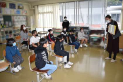 11月2日「ほんわか読み聞かせ」-02 公開日 2021/11/04 更新日 2021/11/04 学校の特色ある活動 【ほんわかグループの読み聞かせ】(中学年) ※11月は、1回のみの読み聞かせです。 〇子どもたちは、絵本だけでなく、ほんわかさんの語りにも 引き込まれていました。 〇写真は、中学年の様子を撮影したものです。 (写真・上:3年生、写真・下:4年生)