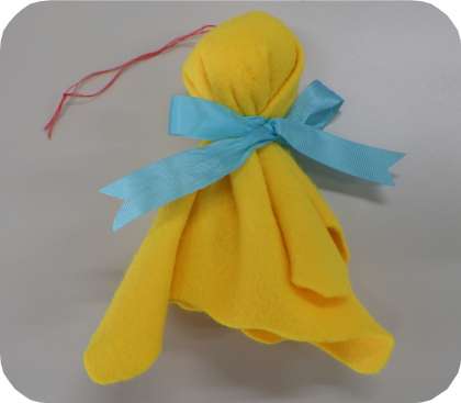 ○楽しいクイズの後、5年生が作ったかわいい「お守り」を