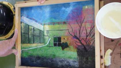 11月29日「和紙作品制作」6年(第2回)-08 公開日 2021/11/29 更新日 2021/11/29 特色ある学校づくり推進事業 【和紙作品制作「思い出の学校」・6年生】第2回(8) ○子どもたちの作品(途中経過)を紹介します。 〜次回、作品を仕上げ、完成する予定です〜
