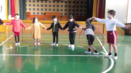 【全校集会】〜全校遊び「フラフープ送り」〜