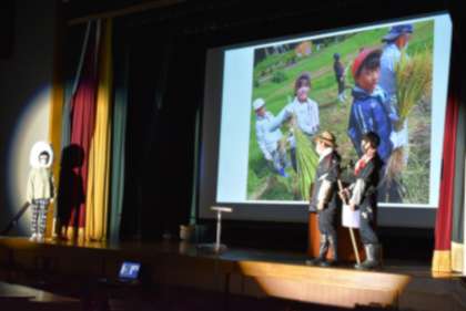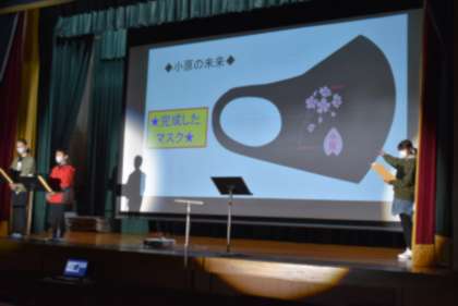 2月19日「学習発表会」(3) 公開日 2022/02/19 更新日 2022/02/19 学校行事 <写真・上> 5年生 「米を通して小原のよさを伝えよう」 …1年間「お米」を通して小原の良さを考え、 活動してきた学習の成果を、劇とスライドで 発表しました。 <写真・下> 6年生 「小原2030 〜持続可能な小原の未来〜」 …将来、人が集い、楽しく暮らすことのできる 私たちの大好きなふるさと小原が続くために 私たちなりに考えたことを発表しました。