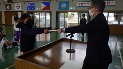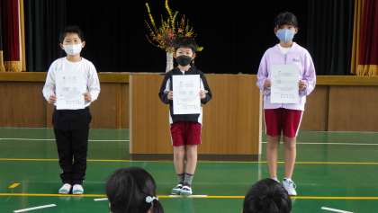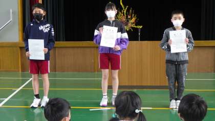 児童会がスタートします。児童会会長・副会長および学級委員長、ほんわか・すこやか・ふれあい委員会各委員長の6名が一人ずつ、それぞれの思いを述べました。本城小学校児童会にとって、たった一人しかいない大切な存在(立場)です。初心を忘れることなく、積極的な行動に期待してやみません。