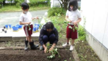 ○今日(5月16日)には、担任の先生から植え方を教えていただいた後で、実際に自分の手でサツマイモの苗を畑に植えました。