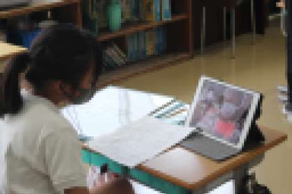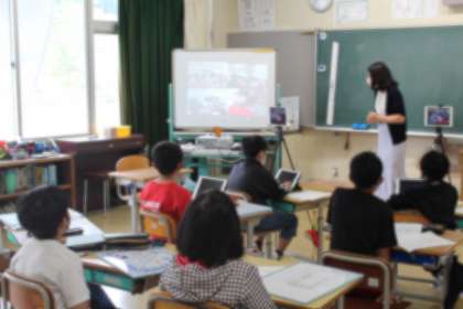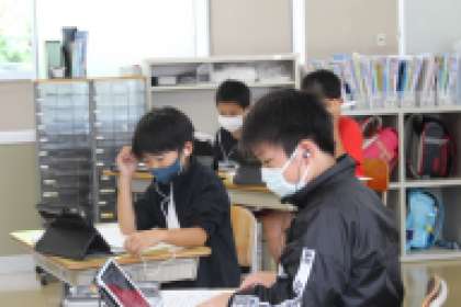 オンラインが終わり、担任の先生からの「オンラインどうだった?」という問いかけに、「新しい出会いのきっかけになった」「相手のリアクションが遅れるなど、伝わっているか不安になって、少し難しかった」などの感想を述べていました。今後のタブレットを使っての協働的な学習のあり方を考えるうえでも、とても貴重な感想でした。
