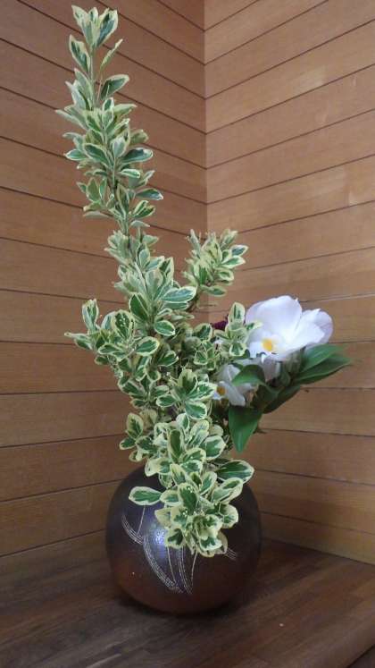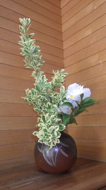 ○先日、Tさんが来校され、写真のような「生け花」を生けてくださいました。
