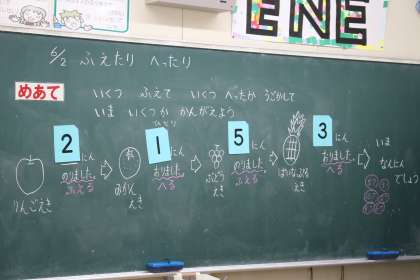 足し算・引き算を学びました。本時の授業を通して、算数を理解するうえで、文章を正しく読み取る(国語の力)ことがいかに大切であるかがわかりました。また、子どもたちが考えるプロセスの中で、「見える化」が子どもたちの理解を促す大きな支援になっていました。