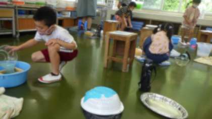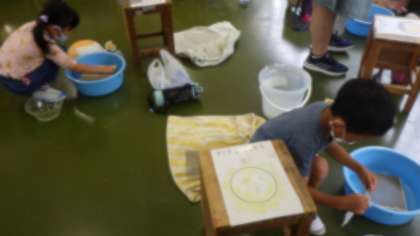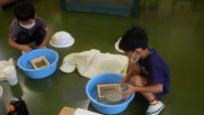 ○初めての和紙制作でしたが、漉き方に慣れてくると楽しくなり、生き生きとした表情で作品づくりをしていました。