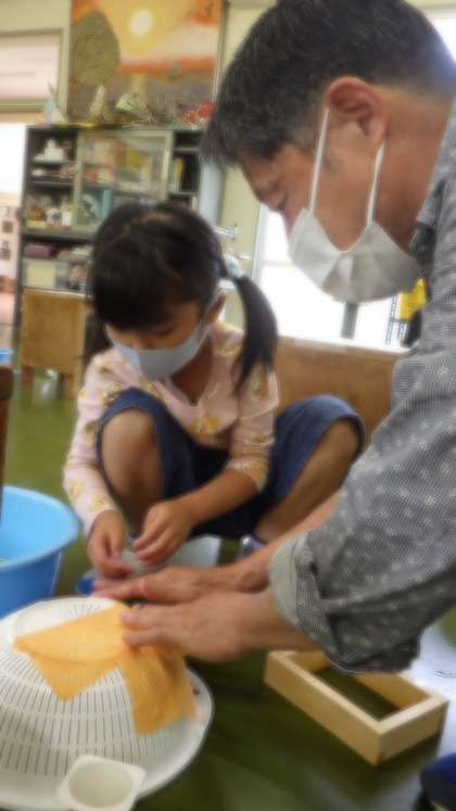6月13日「和紙作品制作・1年生」(4) 公開日 2022/06/13 更新日 2022/06/13 特色ある学校づくり推進事業 ○今年も、和紙講師Fさんが学校へ来て、子供たちに和紙制作の手順や技法を教えてくださいます。
