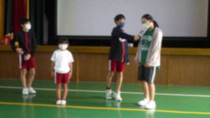 ○はじめに、7月が誕生月の子にインタビューしました。「誕生日」「好きな色」「好きな月」などについて発表しました。