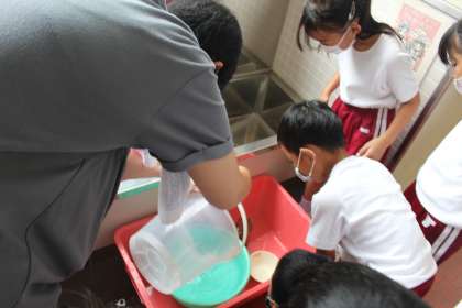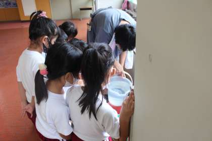 ある日、教室の前を通りかかると、教室から1年生の子どもたちと担任の先生が、何やら実験をするかのような道具をもって手洗い場に出てきた。「先生、今から実験、実験!」と声をかけてくれる。全員がひとつの方向を向いて目を輝かせるその姿に、思わず「いいなあ」と言葉が漏れてしまった。