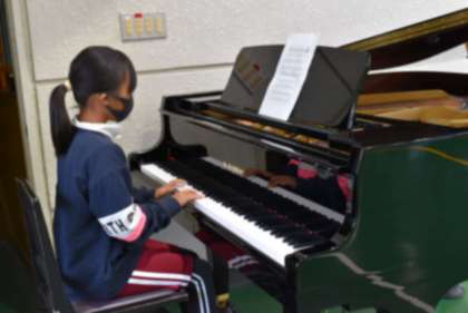 〇5年生・Mさんのピアノ伴奏で、みんなで校歌を歌いました。
