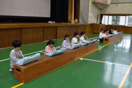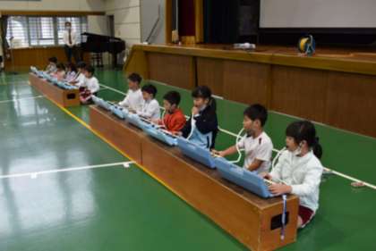 10月7日「低学年の音楽発表」その1 公開日 2022/10/07 更新日 2022/10/07 学校行事 【楽器演奏の発表】 〇音楽の授業で練習した楽曲を、上級生・先生たちの前で発表しました。 (1曲目は「かっこう」でした。)