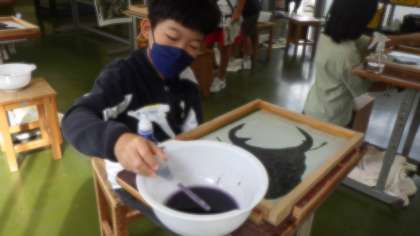 10月3日「和紙作品制作」(5年生)