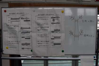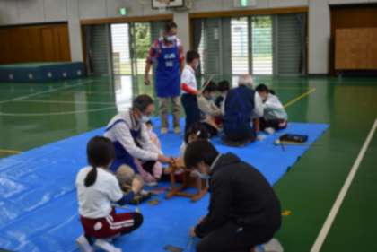 10月18日「ものづくり教育プログラム授業」その1 公開日 2022/10/18 更新日 2022/10/18 学校の特色ある活動 〇ものづくりサポーター・3名が本城小に来てくださり、豊田市ものづくり教育プログラムの中の「竹で空気でっぽうを作ろう」の授業をしてくださいました。