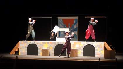 ○今年度は、小原交流館ホールに劇団「俳優館」の方々をお招きして、芸術鑑賞会を開催しました。本城小は午後の部で、他の2校とともに約1時間の演劇を鑑賞しました。