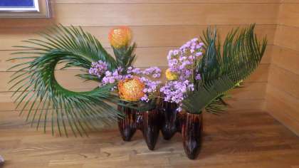 11月21日【花ボランティア・Tさんの生け花作品】 公開日 2022/11/21 更新日 2022/11/21 お知らせ 【花ボランティア・Tさんの生け花作品】(本城小の玄関) 〇11月は、写真のとおり、葉と花を組み合わせた「おしゃれな生け花作品」を飾ってくださいました。 〜本城小のために、今月も花を生けてくださり、 本当にありがとうございます〜