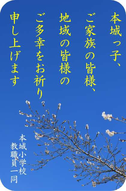 令和5年・2023年「新年のごあいさつ」 公開日 2022/12/30 更新日 2022/12/30 お知らせ 1月1日、令和5年・2023年が始まります。 皆様にとって幸せな一年・輝かしい一年となりますよう お祈り申し上げます。 本年もよろしくお願いいたします。 (本城小学校 教職員一同より)