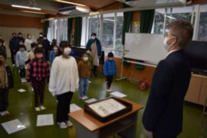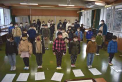 【新年スタート集会】 ○児童会長・Kさんに続いて、みんなで「新年のあいさつ」をしました。