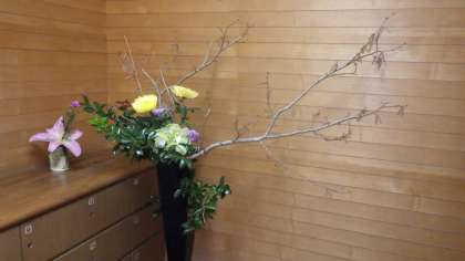 〇先日、写真の通りの「ダイナミックな生け花作品」を飾ってくださいました。