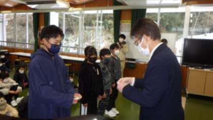 6年生・1人、5年生・3人に「体力章」が授与されました。