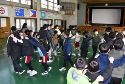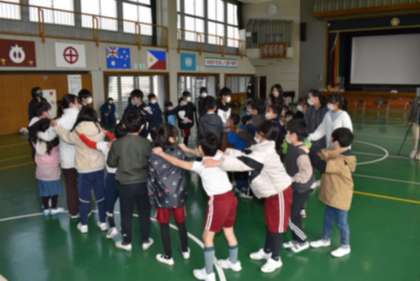 ○1年生の出しもの「じゃんけん列車」をしている時の様子です。