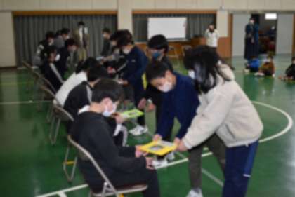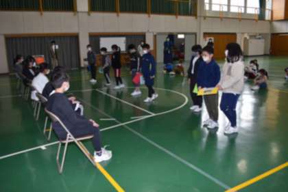○在校生から6年生へ「写真入りのメッセージカード」を渡しました。