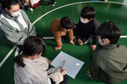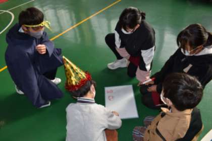 ○インタビューの後で、縦割り班の仲間で「絵しりとり」を行いました。