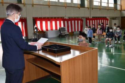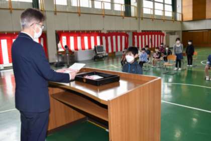 3月24日「修了式」その2 公開日 2023/03/24 更新日 2023/03/24 学校行事 【修了証の授与】 〇2年生・1年生の代表児童に、校長先生から「修了証」が渡され ました。 (低学年の代表児童も立派でした。)