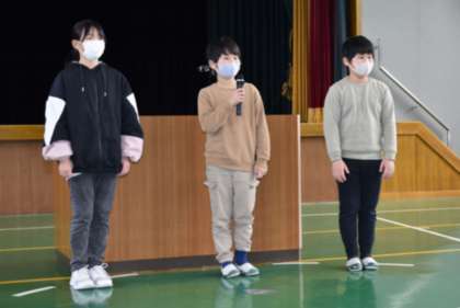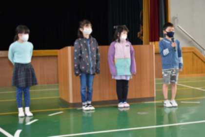 〇児童全員が一人ずつ、今年度1年間を振り返って「頑張ったこと」を発表しました。また、「来年度頑張りたいこと」も発表しました。