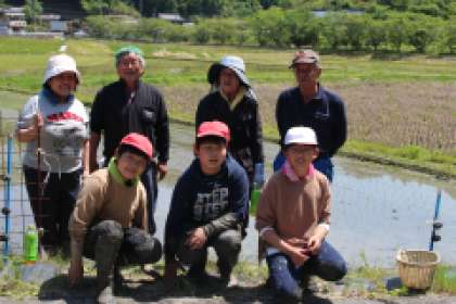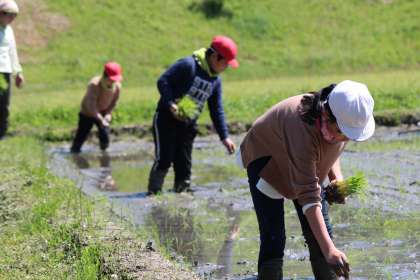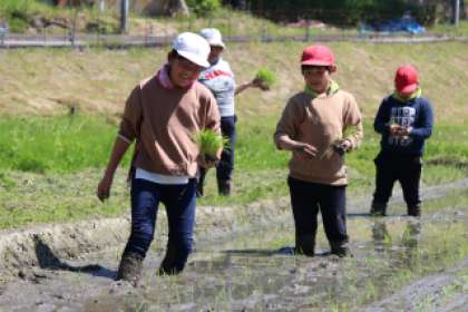 5年 田植え体験活動 公開日 2023/05/10 更新日 2023/05/10 学校の特色ある活動 4月の「もみまき」から、苗がすくすくと育ち、今日、田植えの時を迎えました。地域ボランティアの事前準備とご指導・ご助言のもと、5年生の子どもたちは苗の一本一本を自分の手で植えていきました。 今年はたった3人の児童による体験。しかし、地域の方々にも見守られながら、とても元気に、楽しく取り組みました。