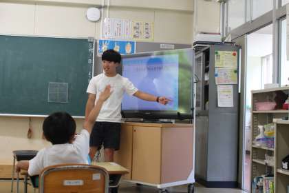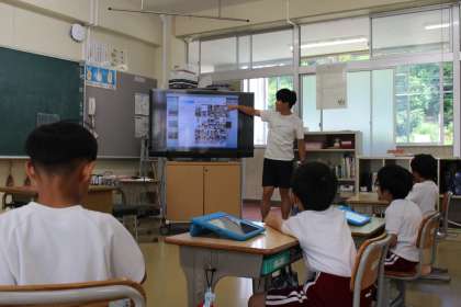 1年 プログラミング学習 公開日 2023/06/07 更新日 2023/06/07 各学年から 先日植えたあさがおの種から目を出し始めた葉を観察することを目標に、本時の授業が始まりました。画像を活用するために、タブレットを使って写真を撮りました。子どもたちは葉っぱを観察するためにどのように撮ったらいいのか試行錯誤しました。 大型テレビを活用し、教師のタブレット画面をモデル画面として映し出して、子どもたちに必要な技能の習得をサポートしました。